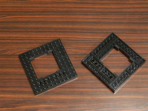 ここで、工夫が必要になった。M4の大型ワッシャだけではM4ボルトとマド穴角との隙間が大きくて良好な固定ができないのだ。そこで、写真にあるLEGOブロックの特殊パーツである丸い穴あきプレートブロックを用意した。この部品をワッシャとして利用することでダブルナットでの強固な固定をすることができた。