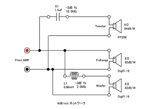 ・ デバイディングネットワーク:5kHz 6dB/oct -3dBクロスネットワーク