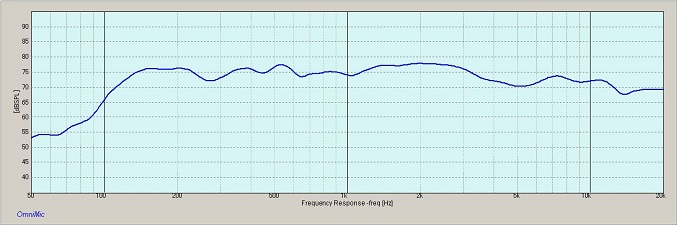 周波数特性は概ね良好である。大きなうねりも無く、中域のレスポンスは76dB程度で-10dBまでの再生周波数範囲は100Hzから20kHzといったところ。もっとも、20kHz以上はこの測定システムでは測れないので、さらに高域は伸びていると思われる。
