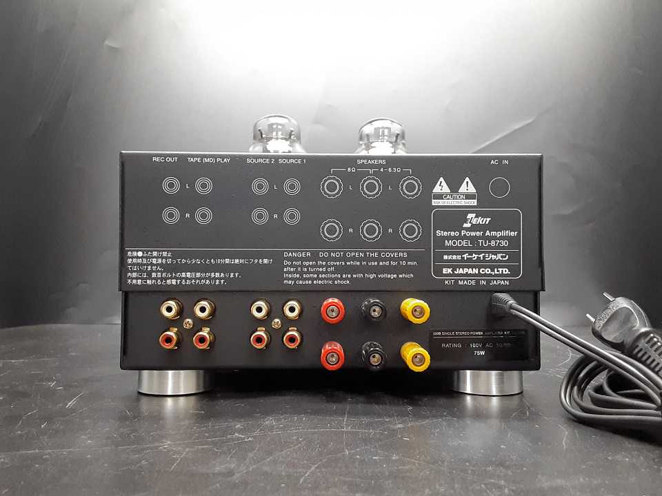 Elekit TU-8730(300Bシングルプリメイン)キット組立品中古の整備が完了しました。初段RCA 6SN7WGTA(W:耐震管, A:改良型), JJ 300B仕様(新品定価 66,000円程度)のスペシャルバージョンです。入荷時にJJ300Bの一本にIpの低下兆候が見られたため、ペアの取り直しを行い完全な特性に仕上げ直した個体です。