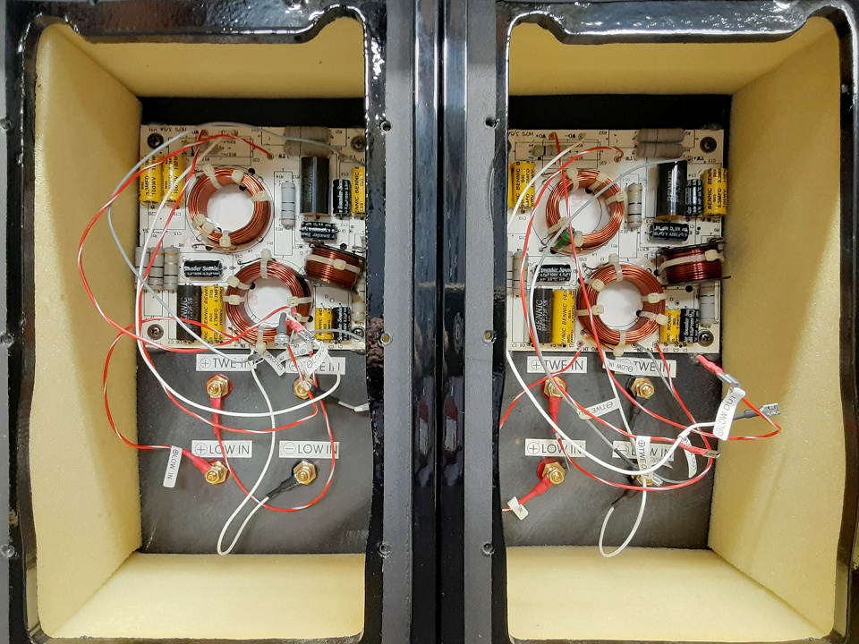 背面にのHF (高域)とLF (低域)ジャンパープレートを外してバイワイヤリング / パッシブバイアンプにも対応可能で自分だけの音作りも可能です。数W以上の出力があれば真空管アンプでも充分ドライブ可能です。