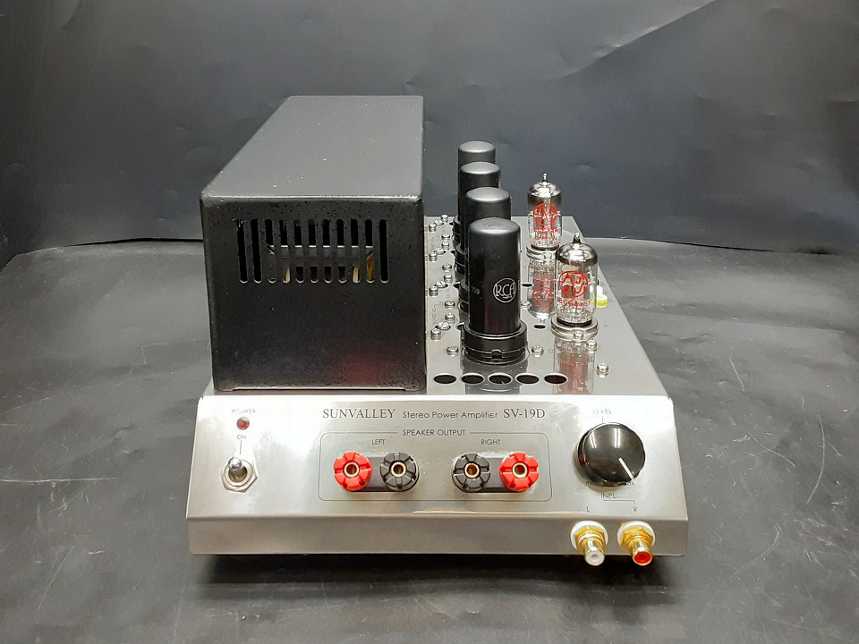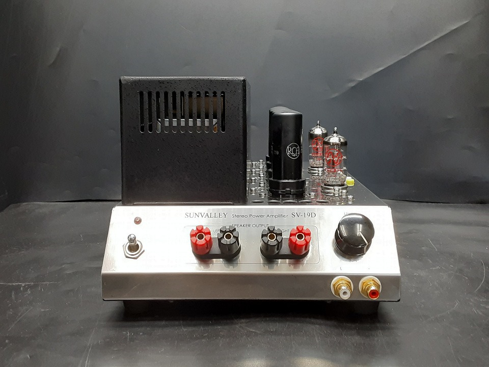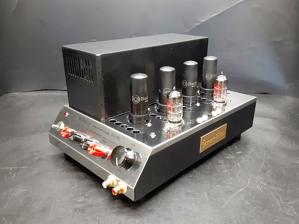 SV-19Dはテスター1本あれば6V6からKT88までのビーム管,五極管(オクタルベース)の大半が使用可能(要バイアス調整)なマルチパーパスアンプです。本個体は力強く中庸の音質にチューニングされ、音楽ジャンルを選ばず低能率スピーカーもしっかりドライブしてくれます。