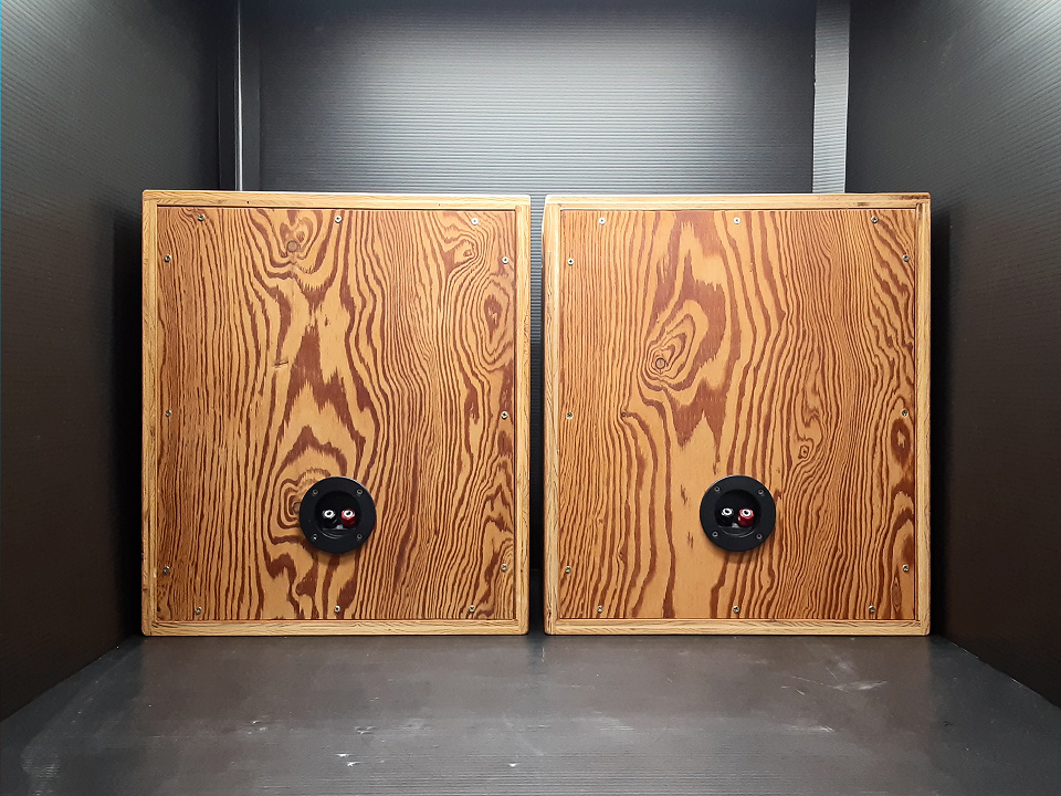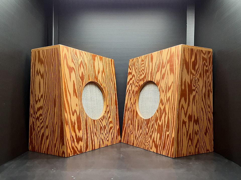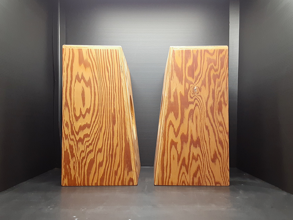 現在いわゆる”米松” (針葉樹合板)の入手は難しく、特に本モデルのフロントパネルに採用した”無節”合板は高価です。以前はスピーカーエンクロージャー用素材として多用され、響きが軽やかで抜けの良さから賞用された米松材の響きの良さをお楽しみください。