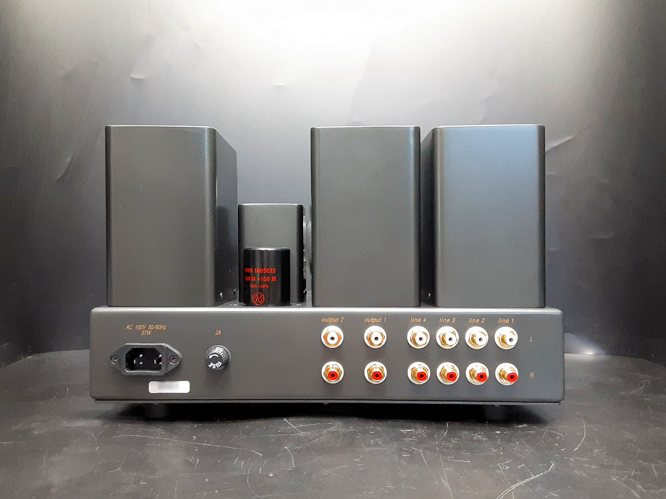 SV-310 は入力は4系統 (ラインレベル), 出力は2系統が装備され、ゲイン(利得)は約10dBとなっており、SV-91Bはじめ一般的な真空管パワーアンプとのマッチングにおいて最も使いやすい設計となっております。また一般的なコンデンサー出力プリと異なり、信号周波数によって出力インピーダンスが変動しないトランス出力のメリットを最大限に活かした音質となっております。