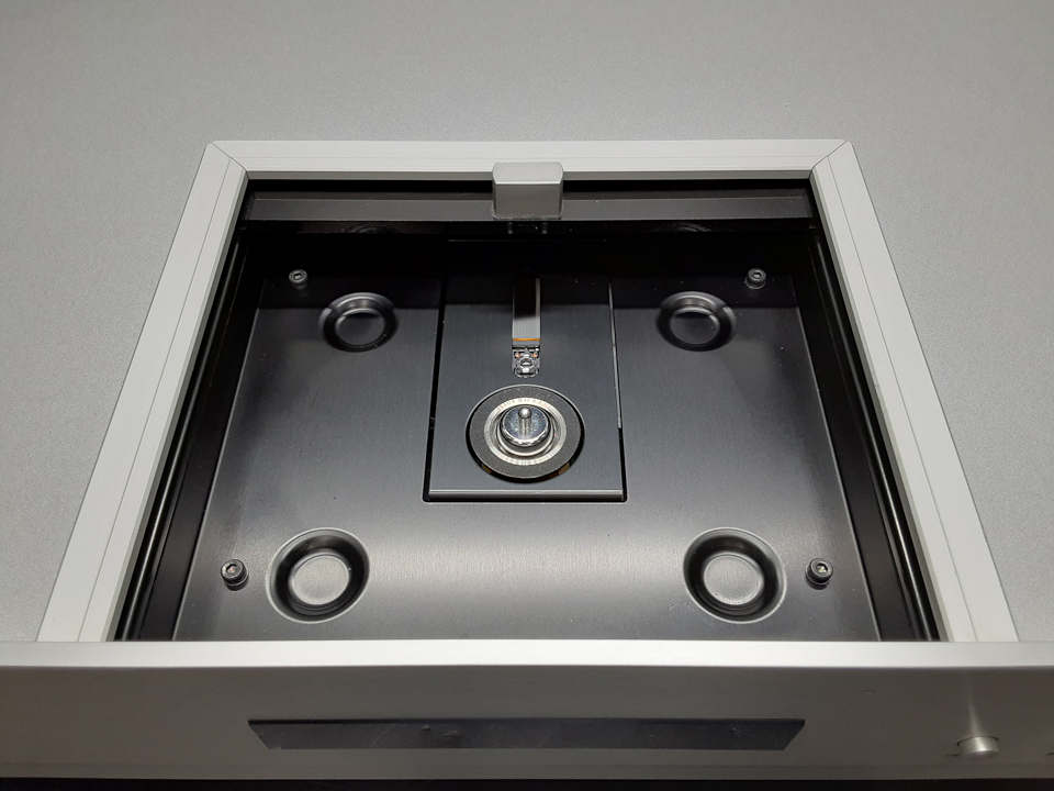 ●ベルト駆動方式に欠かせない高精密度スタビライザーを使用したトップローディング方式を採用し、安定したディスク回転を実現しています。