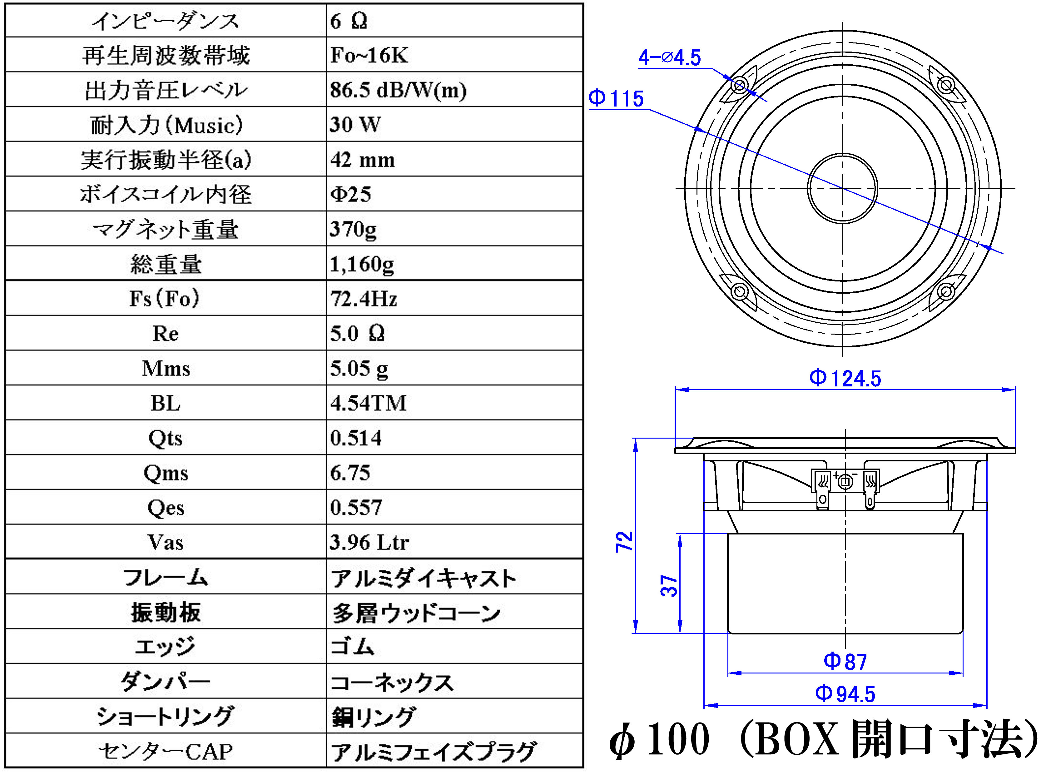 形式:バックロードホーンスピーカー PARC Audio 10cmフルレンジ